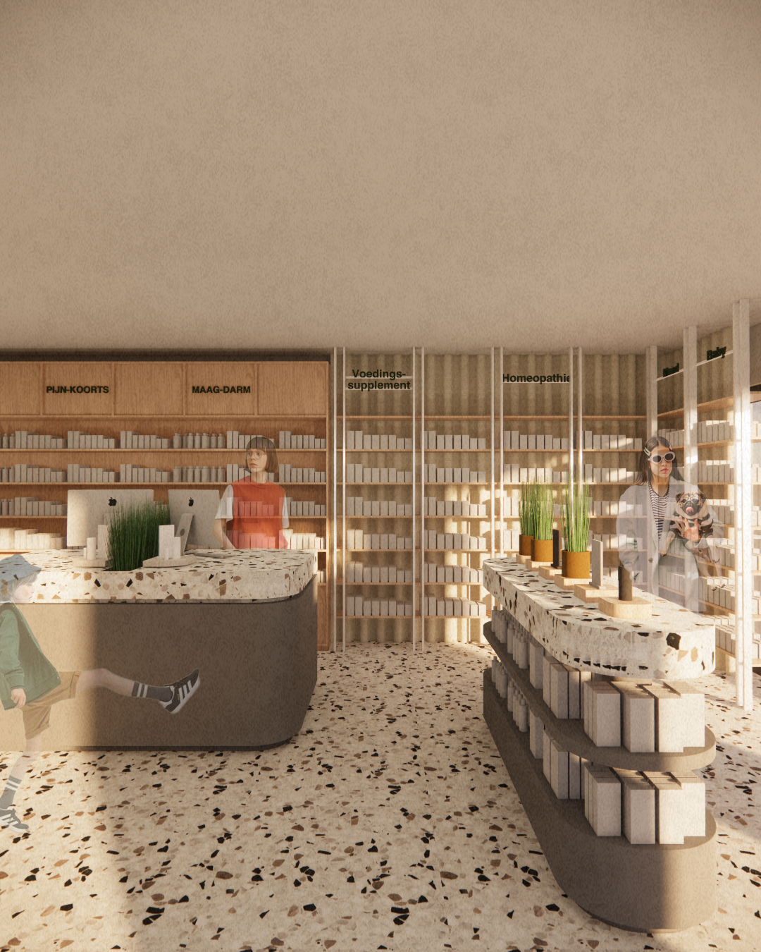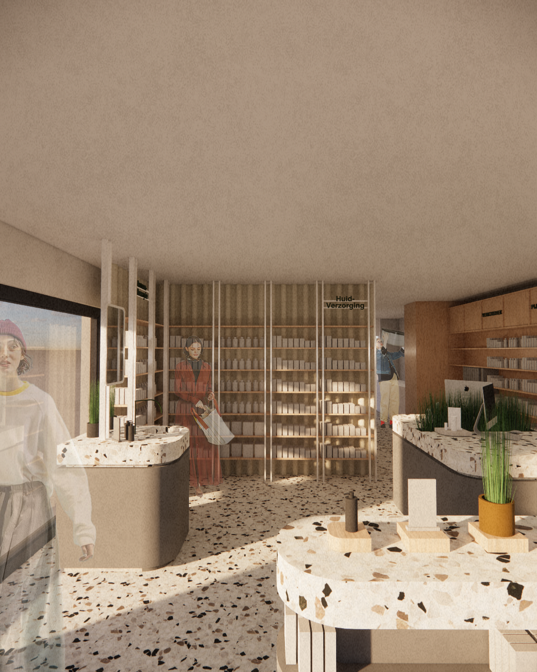 Bij dit ontwerp ligt de focus op de creatie van een centrale en flexibele ruimte waar de klant zich welkom voelt en waar persoonlijke begeleiding centraal staat. Warme materialen en een huiselijke sfeer zorgen voor een welkom gevoel.